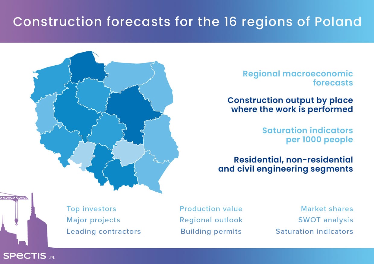 This report provides an in-depth analysis of statistical data and forecasts for 16 voivodeships, taking into account a 5-year development perspective of the three main segments of the construction market: residential, non-residential, and civil engineering.